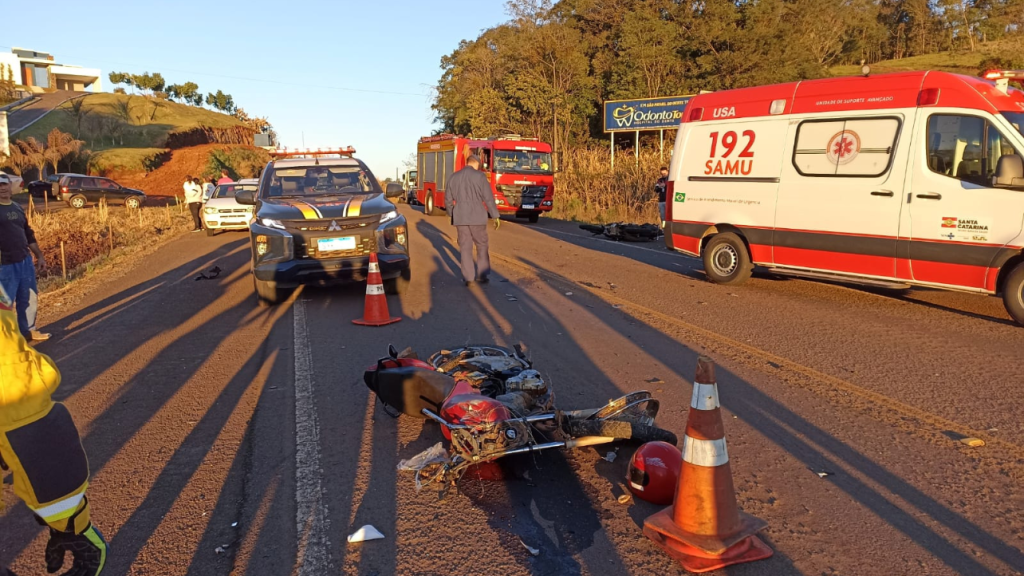 Na tarde de terça-feira (30), um grave acidente de trânsito foi registrado por volta das 17h16 na BR-282, na altura da Linha Canela Gaúcha, em São Miguel do Oeste (SC). A colisão envolveu duas motocicletas e resultou em ferimentos graves nos dois condutores.