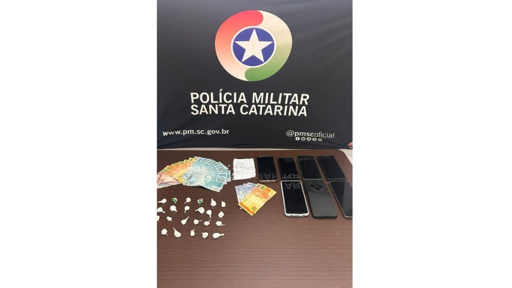Diante da situação, os policiais foram até a residência da suspeita. No local, com apoio do Canil da PM de São Miguel do Oeste, foram encontradas mais 22 buchas de cocaína, além de dinheiro, celulares e anotações relacionadas ao tráfico.
